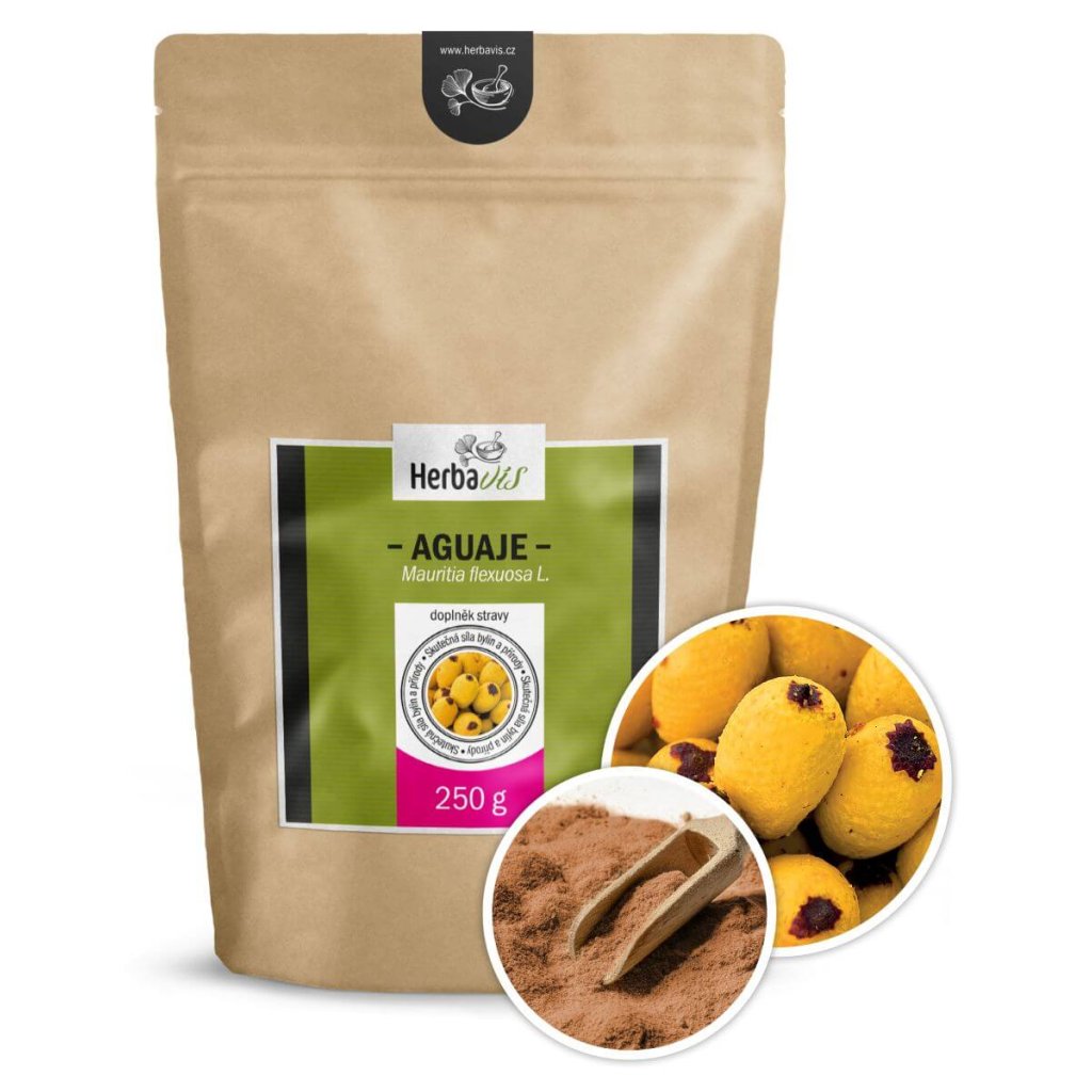Prášek z plodu Aguaje je uchováván v pevném obalu se zipem, který umožňuje opakovatelné uzavírání. Jemně mletý plod Aguaje je tak hermeticky uzavřen, aby odolával světlu, vlhkosti a cizím pachům. Právě tyto tři faktory mají mimořádně velký vliv na výslednou kvalitu bylinného produktu. Díky speciálnímu obalu si tak prášek zachová svůj charakter a chuť.