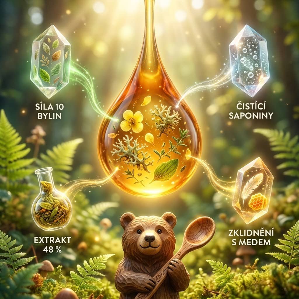 Účinnost sirupu spočívá v komplexní synergii 10 bylin, které působí na různé části dýchacího, trávicího a imunitního systému: