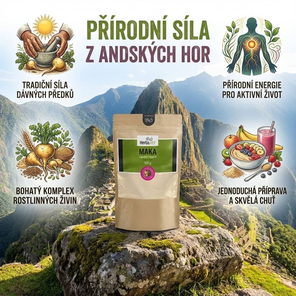 Maca peruánská (Lepidium meyenii) je nenápadná rostlina z And, jejíž síla se skrývá pod zemí. Nálev z ní má světlou, nažloutlou barvu a specifickou chuť – lehce nasládlou a mírně štiplavou.