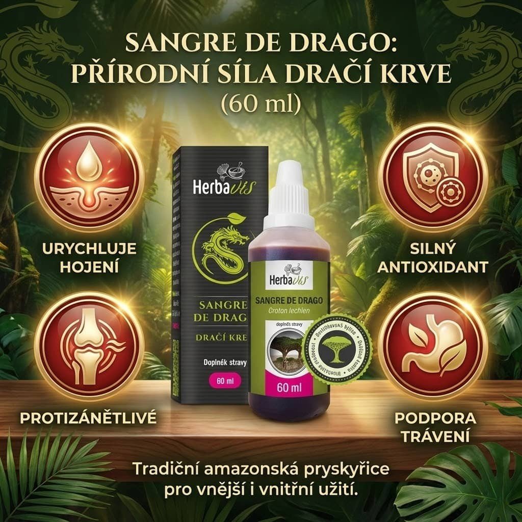 Sangre de Drago je hustá červená míza ze stromu Croton lechleri. Je nenahraditelným pomocníkem v domácí lékárničce i na cestách, a to díky svému všestrannému využití vně i zevnitř.