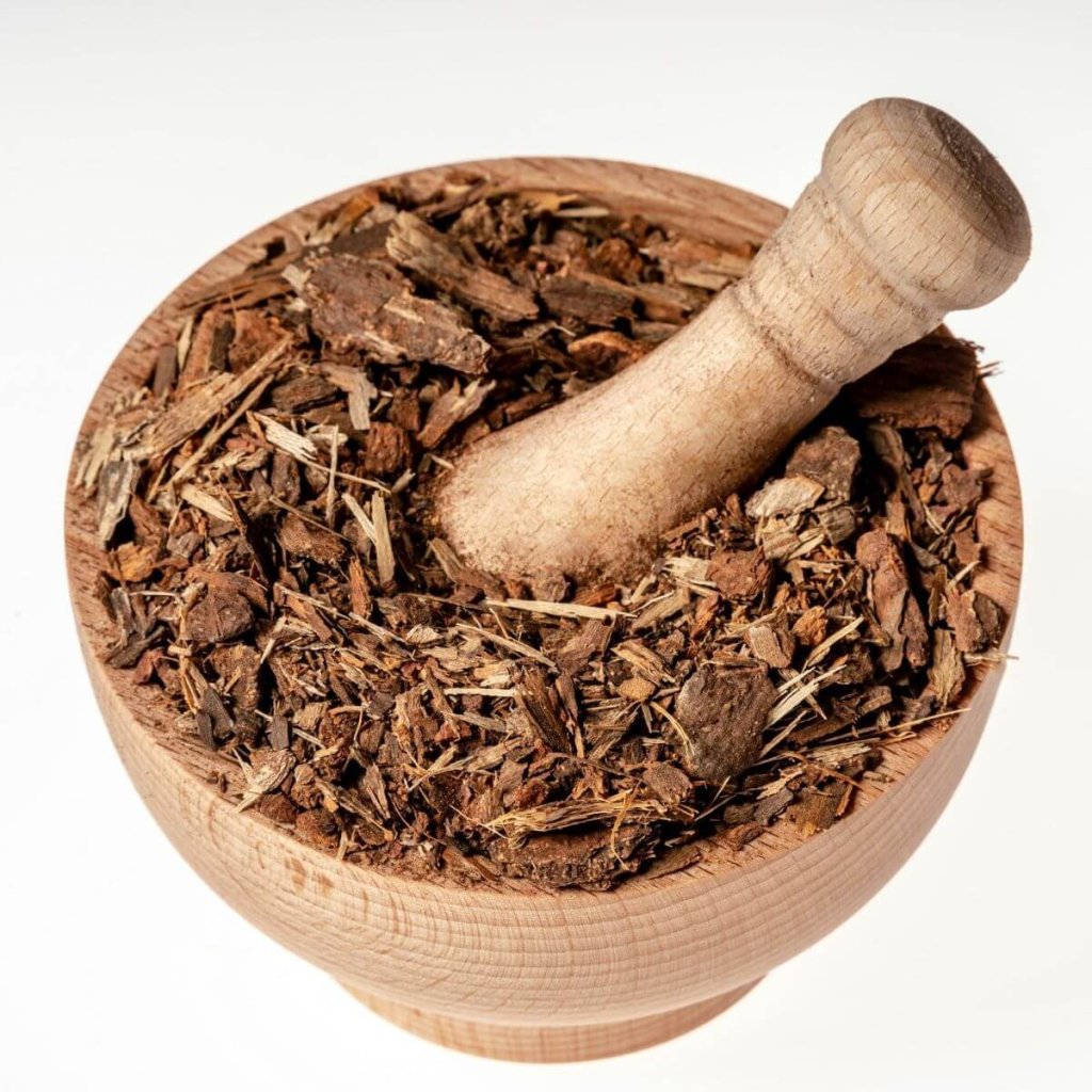100% peruánská bylina Ubos (Spondias mombin) – krájená kůra.